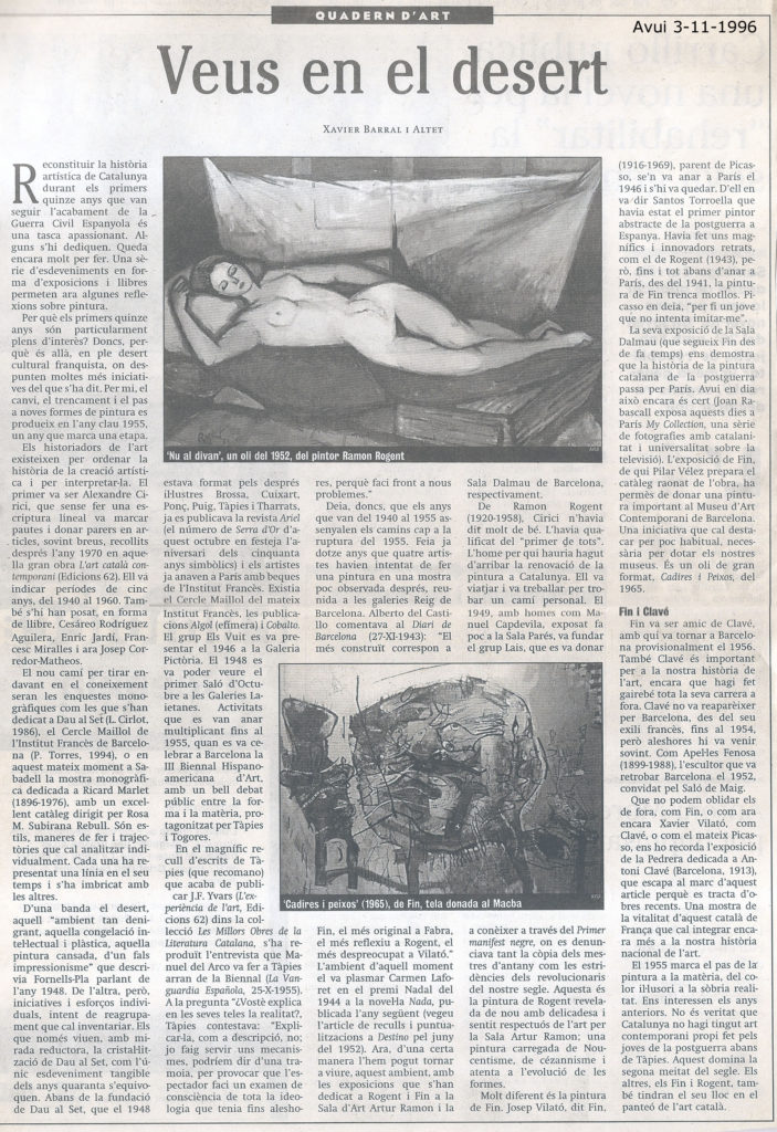 Our exhibition coincides with the show dedicated to Ramon Rogent at Artur Ramon gallery. He was another renovator of the postwar Catalan art and close friend of Fín. This is a unique chance to discover the work of these two renovators of the Catalan plastic from the mid-20th century, whose work has not been valued enough and deserves a complete revision.