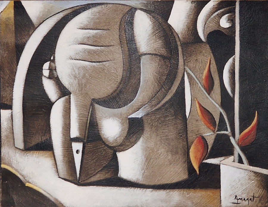 The oeuvre of Amagat has its origin on the avant-gardes: the cubist roots of his painting are evident, as well as some surreal flair. Besides these influences we have to add his interest on the metaphysical painting, and, above all, a need to experiment, something he has never refused and that gives his work a personal sense of timelessness. The tonality of his palette brings him close to art deco, mainly to Tamara de Lempicka, but the similarities end here, his themes and compositions go towards another direction, completely his own.